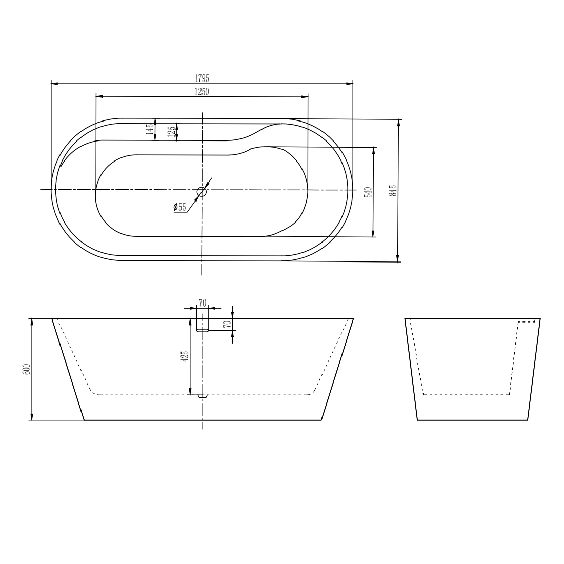 Акриловая отдельностоящая ванна AQUAme AQM3505GW-L, белый 180х85 см