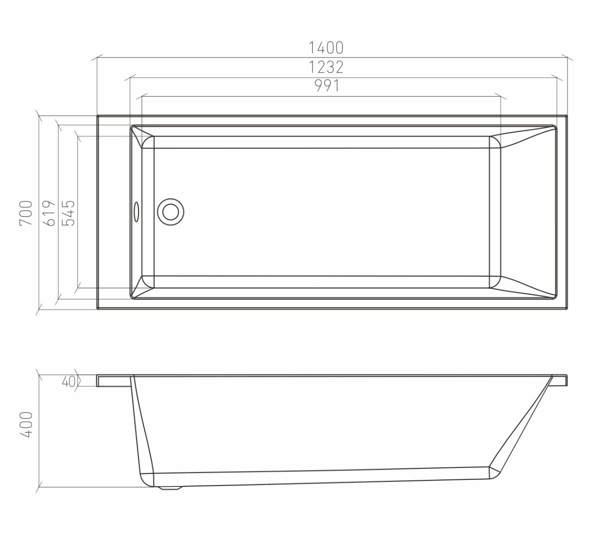 Параметры - 140 x 70 см, глубина - 40 см, объем до перелива - 150 л.