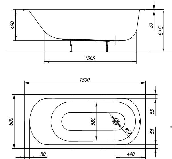 180 X 80 см, литраж - 260 л. Прямоугольная ванна классической формы, предназначена для встройки в подиум. Материал - акрил. Комплектация: ванна без каркаса, без панели.