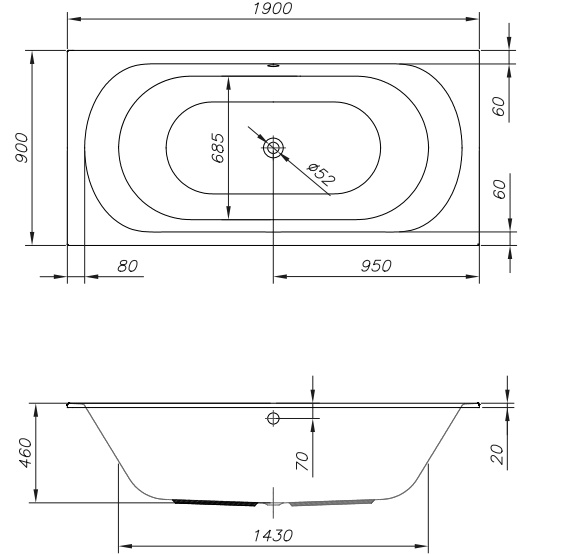 190 X 90 см, литраж - 310 л. Прямоугольная ванна классической формы, предназначена для встройки в подиум. Материал - акрил. Комплектация: ванна без каркаса, без панели.