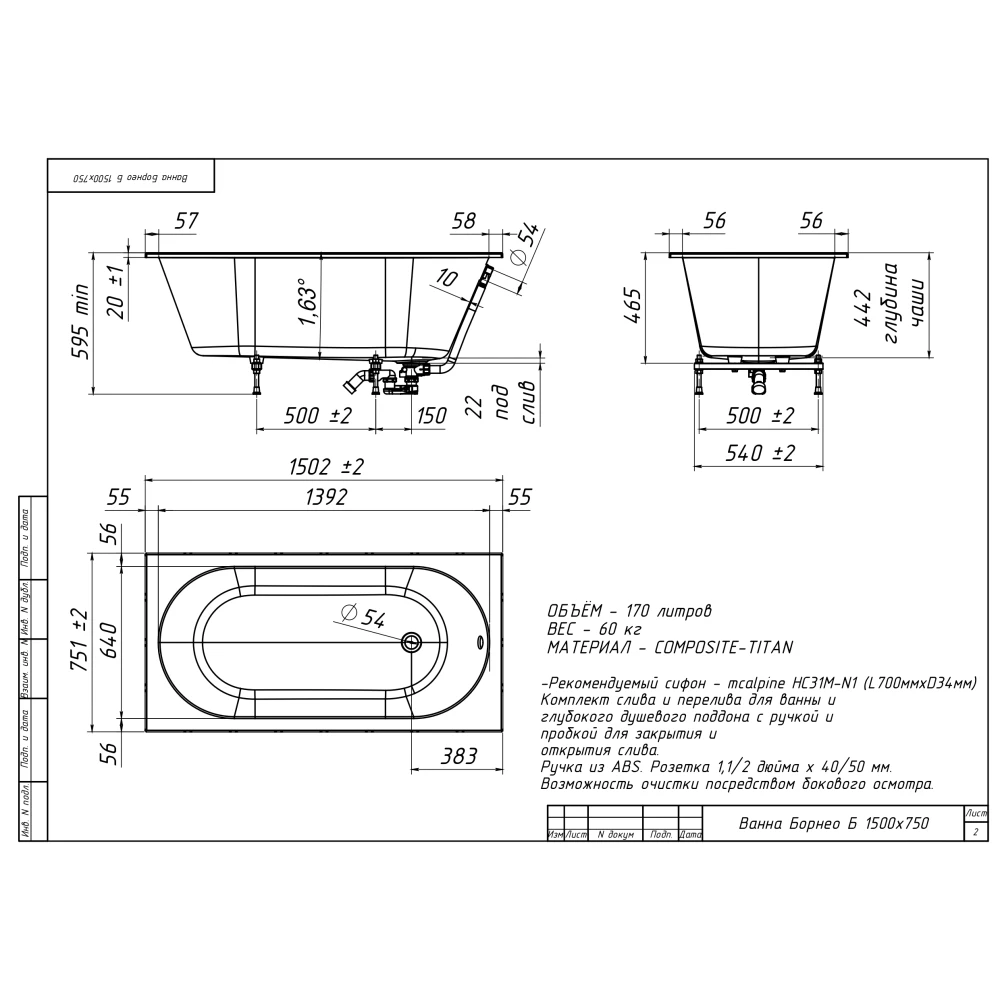 149,7 x 75,1 см. С переливом, на ножках, цвет белый матовый. Каменная масса Solid Surface. Сифон на цепочке.