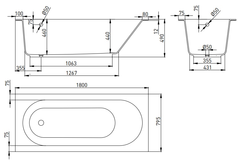 180 x 80 см. C переливом, цвет белый матовый (белый глянец). Ванна для встраивания или облицовки в комплекте с ножками. Ванну возможно удлиннить. Каменная масса Soft Rock.