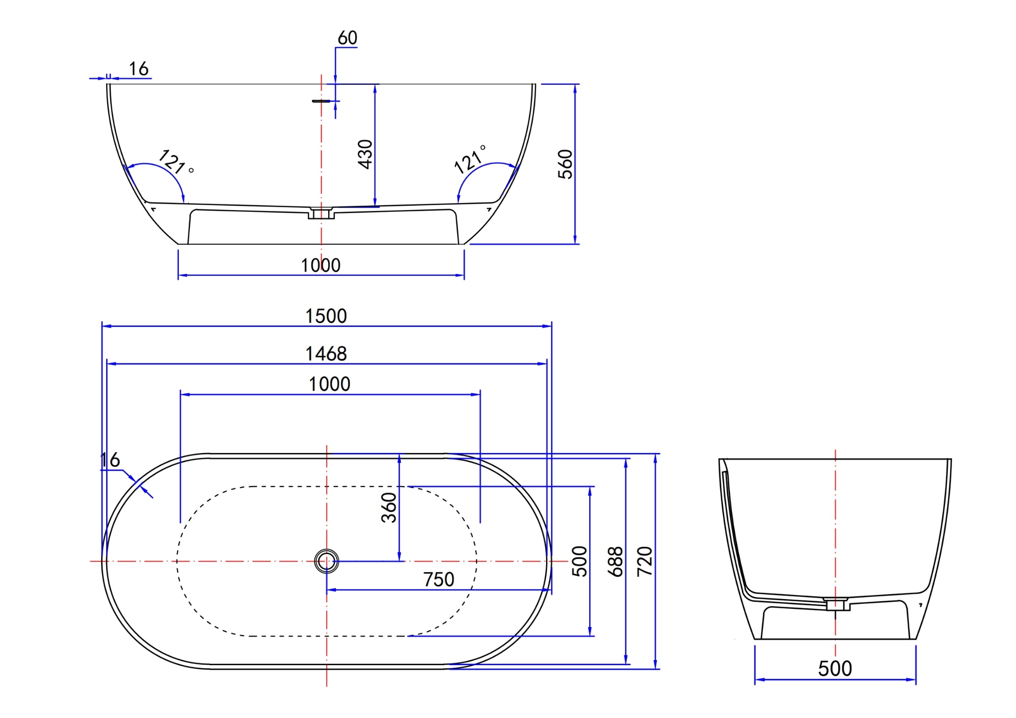 150 x 72 см, цвет белый матовый, сифон Click-Clack). Изготовлена из искуственного камня. Встроенный перелив.