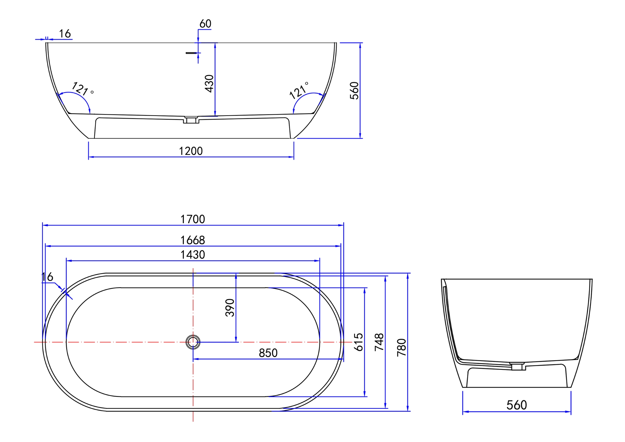 170 x 78 см, цвет белый матовый, сифон Click-Clack). Изготовлена из искуственного камня. Встроенный перелив.