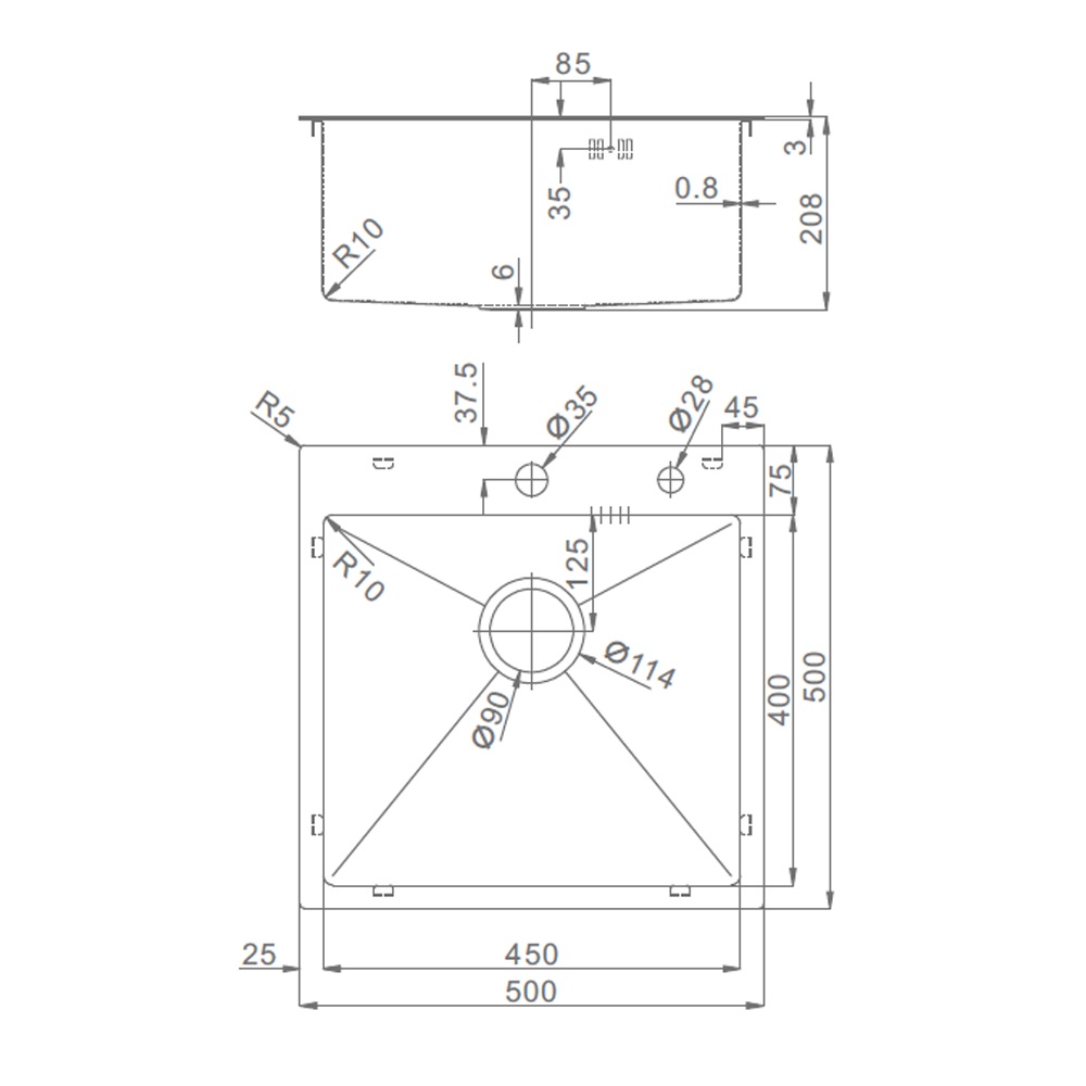 500 х 500 х 208 мм, стальная мойка; сифон; коландер из нержавеющей стали; материал: нержавейка, цвет: золотой сатин.