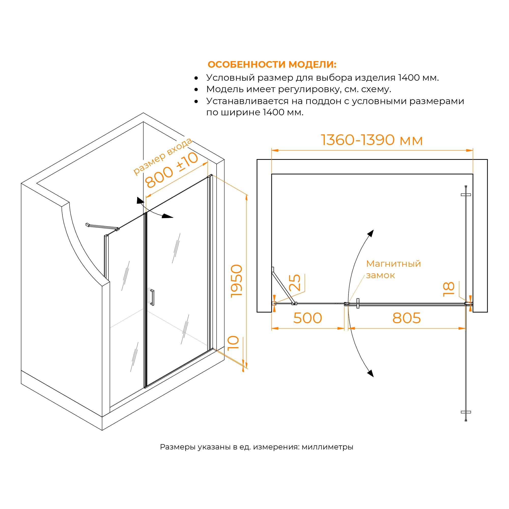 Душевая дверь RGW LE-008 140 см (351200895-11)