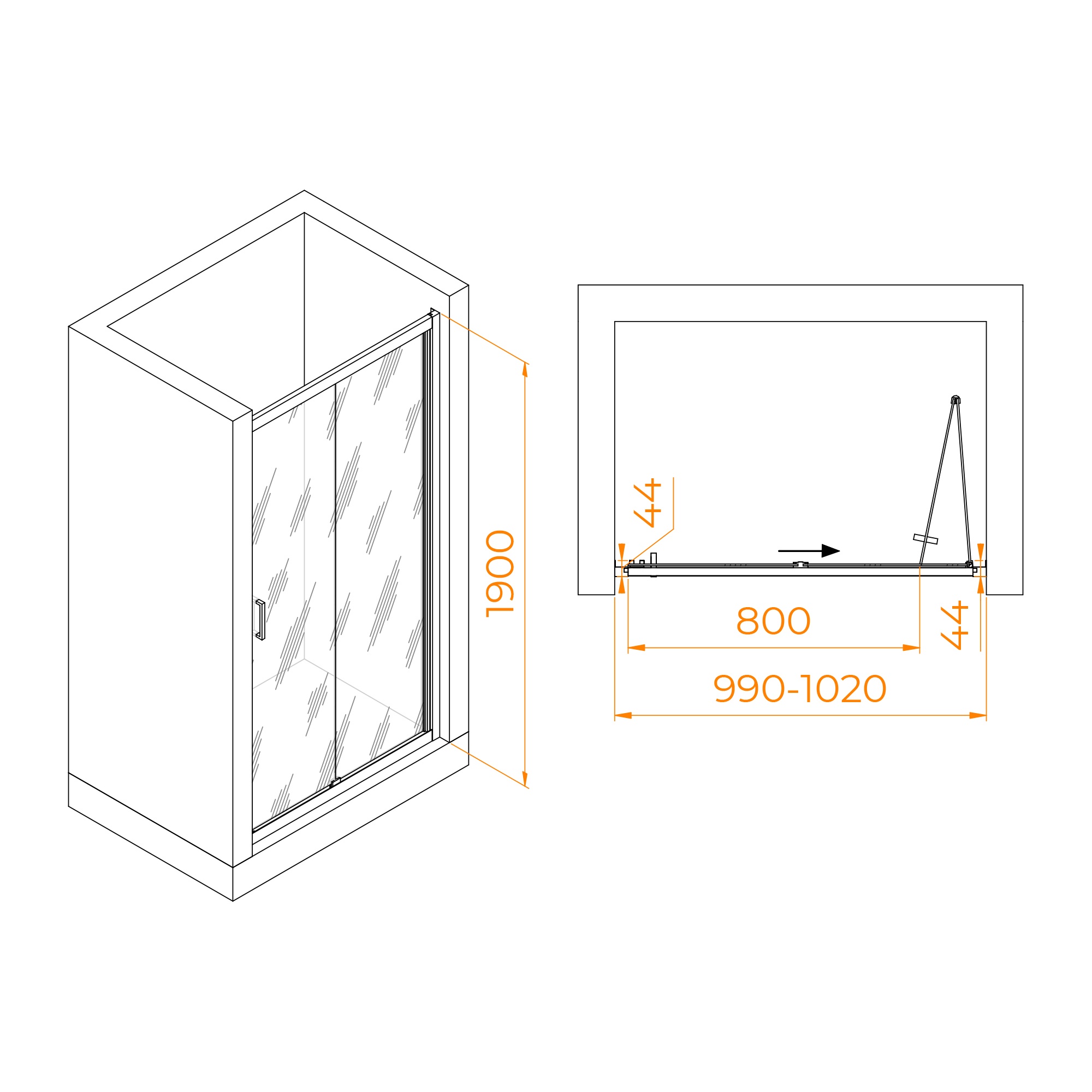 Дверь в душ имеет универсальную установку открытия – на левую или правую стороны.