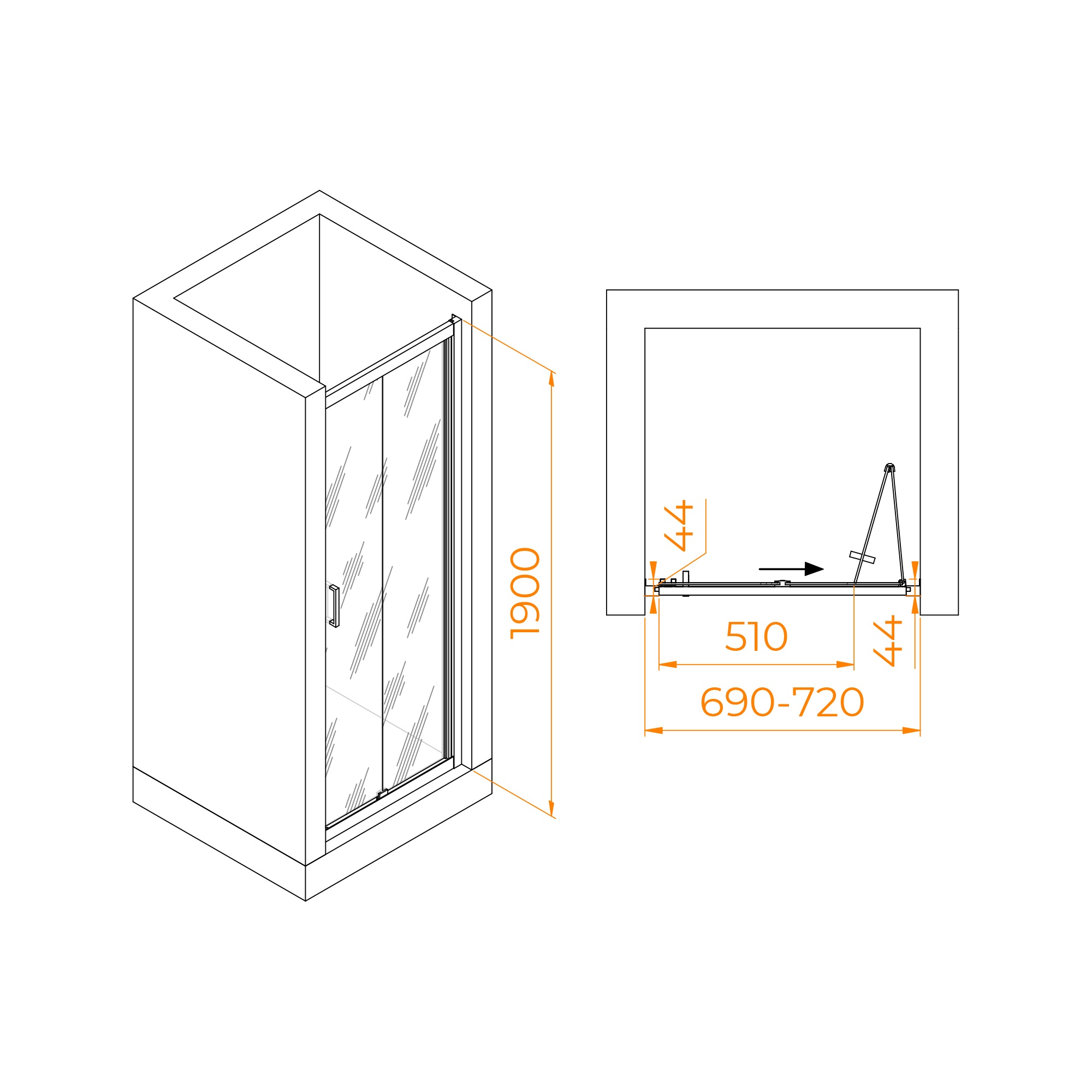 Дверь в душ имеет универсальную установку открытия – на левую или правую стороны.