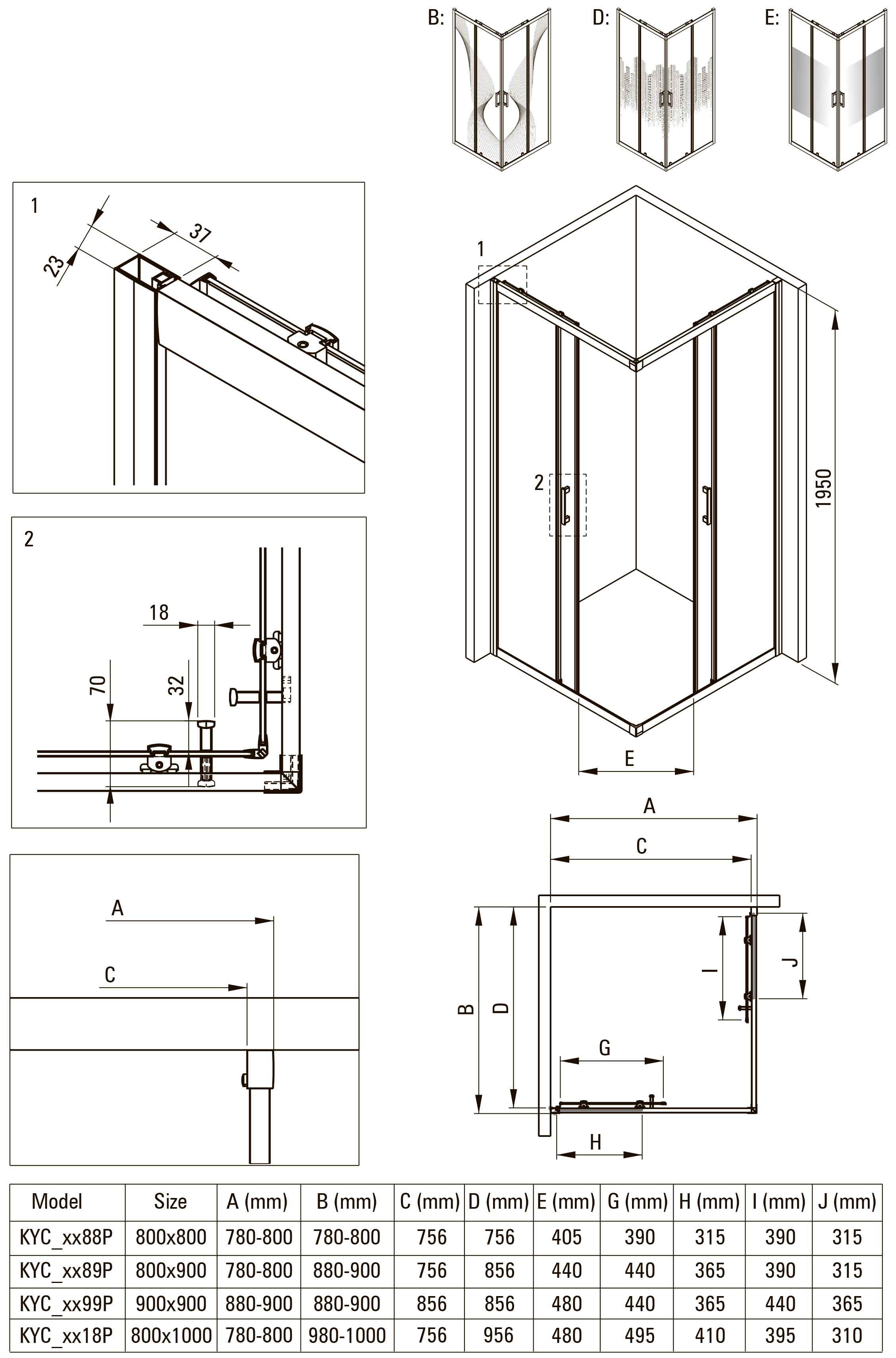 Душевой угол Deante Funkia EVO KYС D099P 90x90x195 см