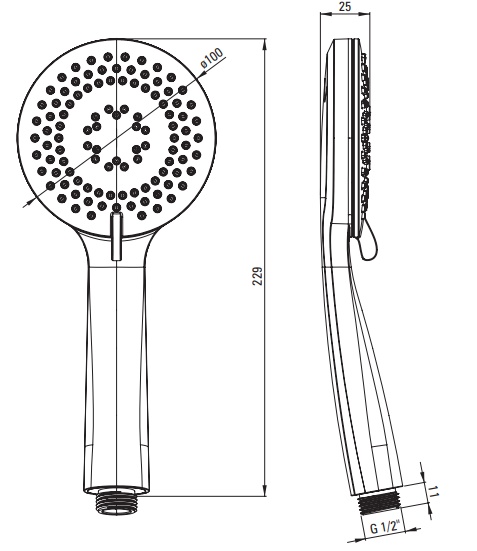 Режим ручной 3-функциональной лейки: дождевая струя, массаж, смешанный