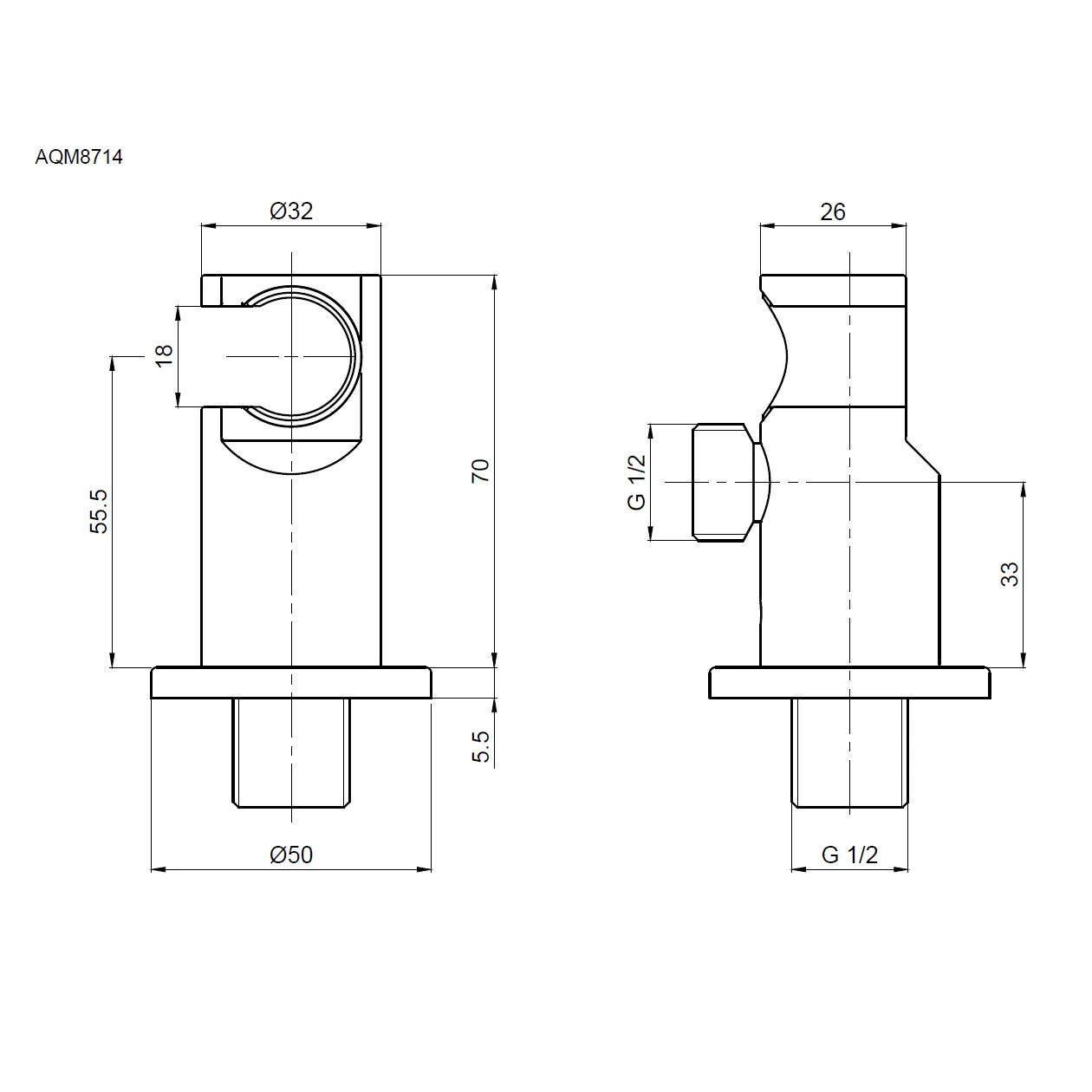 Шланговое соединение с держателем для душа AQUAme Siena AQM8714CR, хром