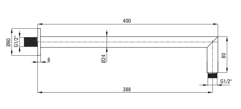 для крепления верхнего душа на стену, вынос 400 мм, резьбовое соединение 1/2". Цвет: титан