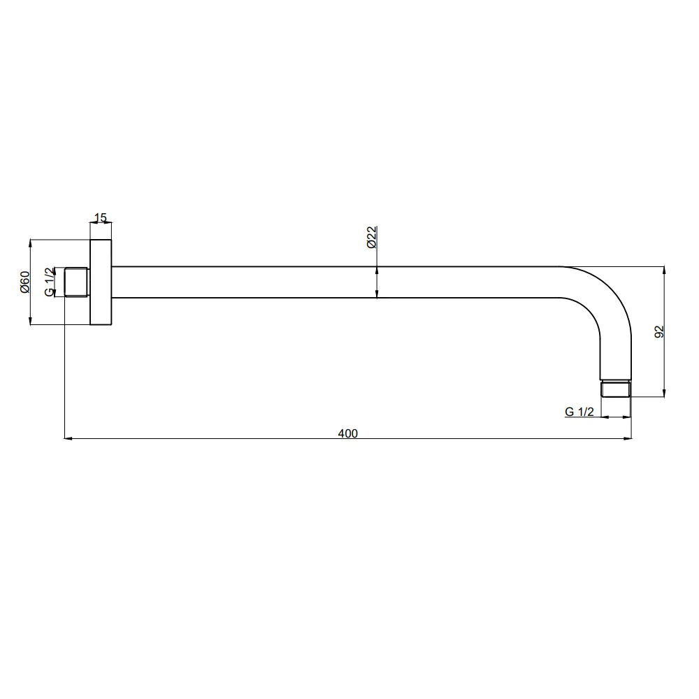 для крепления верхнего душа на стену вынос 400 мм резьбовое соединение 1/2", цвет хром