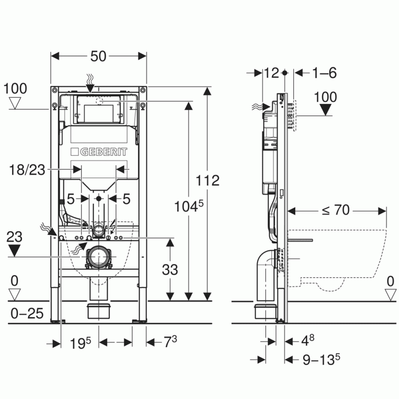 Для подвесного унитаза, H112, 12 см (UP320). Управление спереди. Для монтажа в гипсокартон. Монтажная высота 1,12 м. Ширина 0,5 м. Для клавиш Sigma (в комплект не входит). Без крепления к стене.