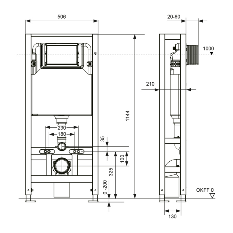 Рама самонесущая, предназначенная для пространства - не нуждается в поддержке структуры. Управление спереди. Для отдельностоящего монтажа. Монтажная высота 1,14 м. Ширина 0,5 м. Кнопка в комплект не входит. Крепления к полу.