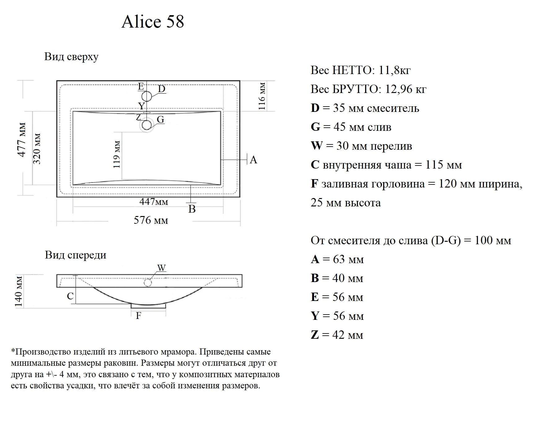 58x47,7 см. Материал: искусственный камень. Цвет: Белый