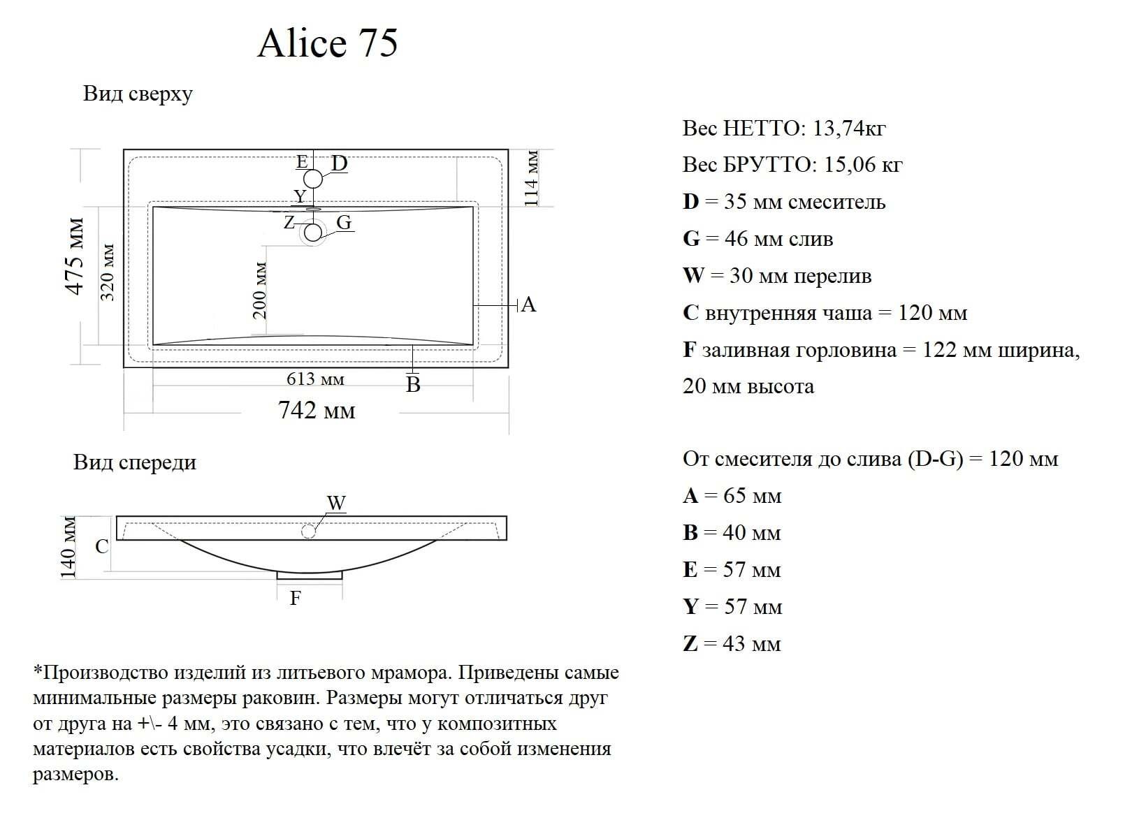 Раковина для ванной комнаты коллекции «Alice» имеет современный изысканный дизайн и элегантную форму. Эстетически ровные линии предают раковине благородные нотки и в любом размере идеально впишется в Ваш интерьер.