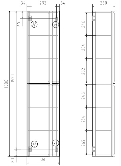 36,0х25,0х160,0 см (ш/г/в).