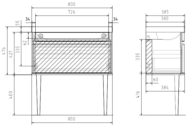 Размер (ш/г/в): 80,0х38,4х42,1 см.