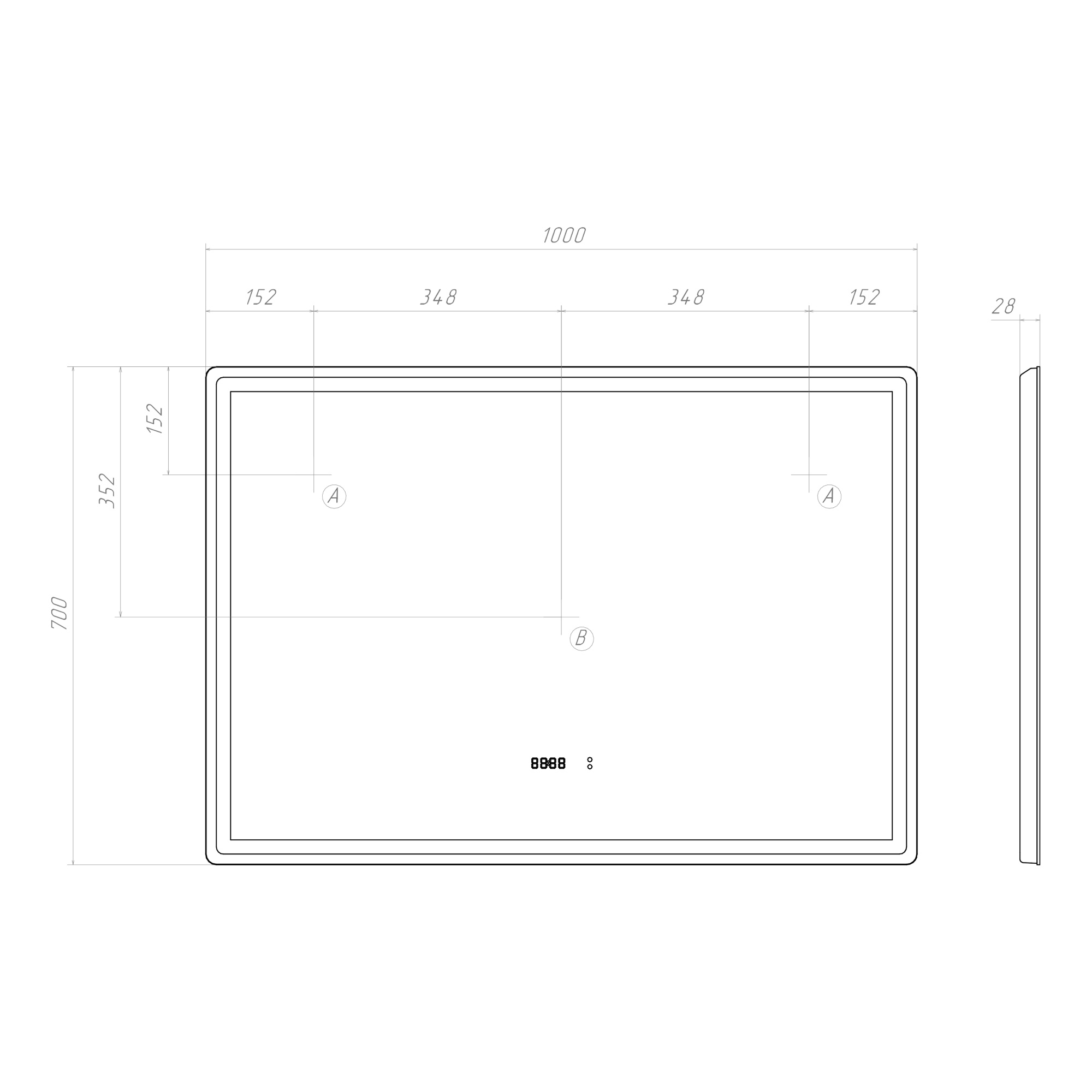 100 х 70 см (ш/в). Бесконтактное включение (на взмах), светодиодная подсветка, встроенные часы, датчик температуры, функция антизапотевания, диммер. Корпус - ABS пластик.