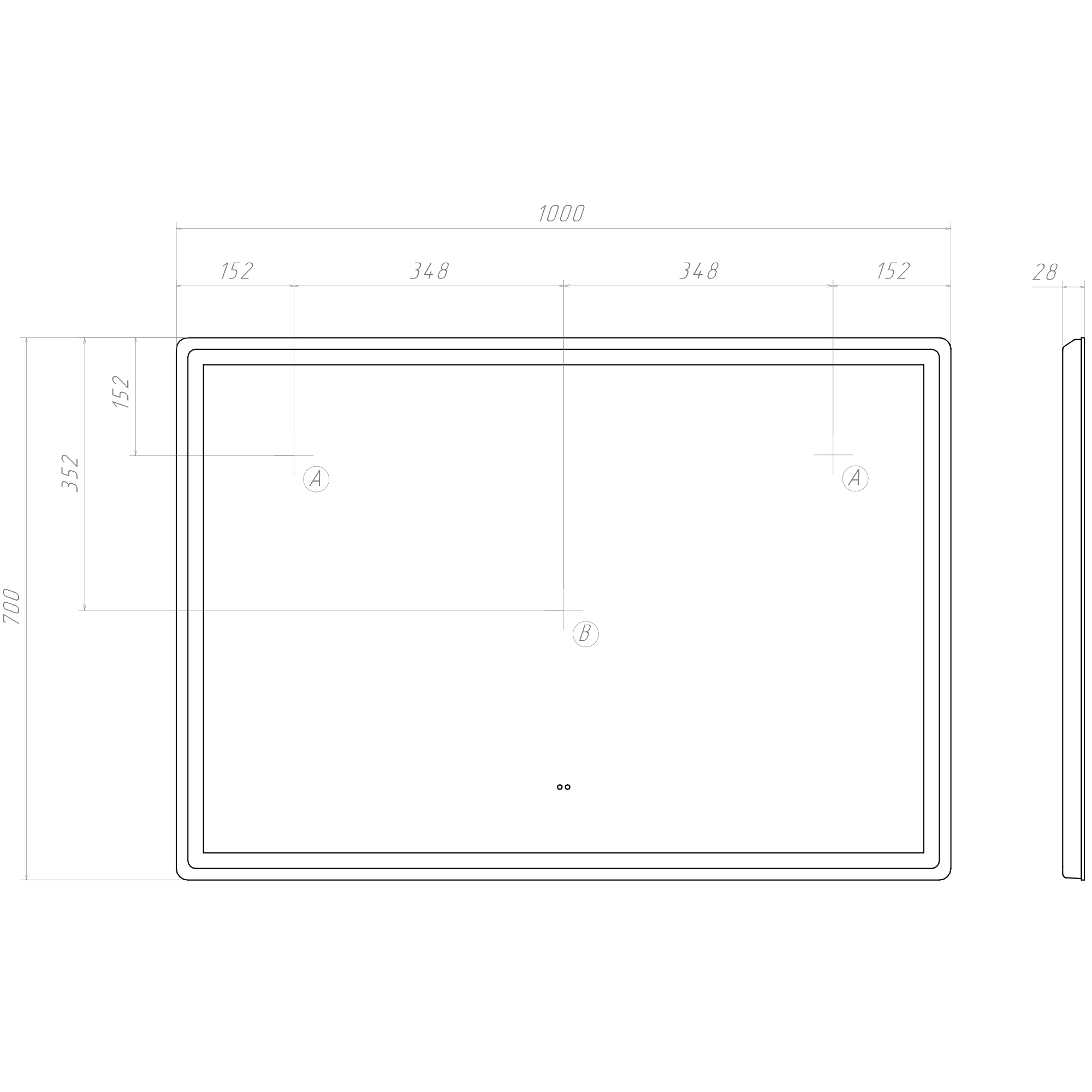 100 х 70 см (ш/в). Светодиодная подсветка, бесконтактное включение (на взмах), функция антизапотевания.