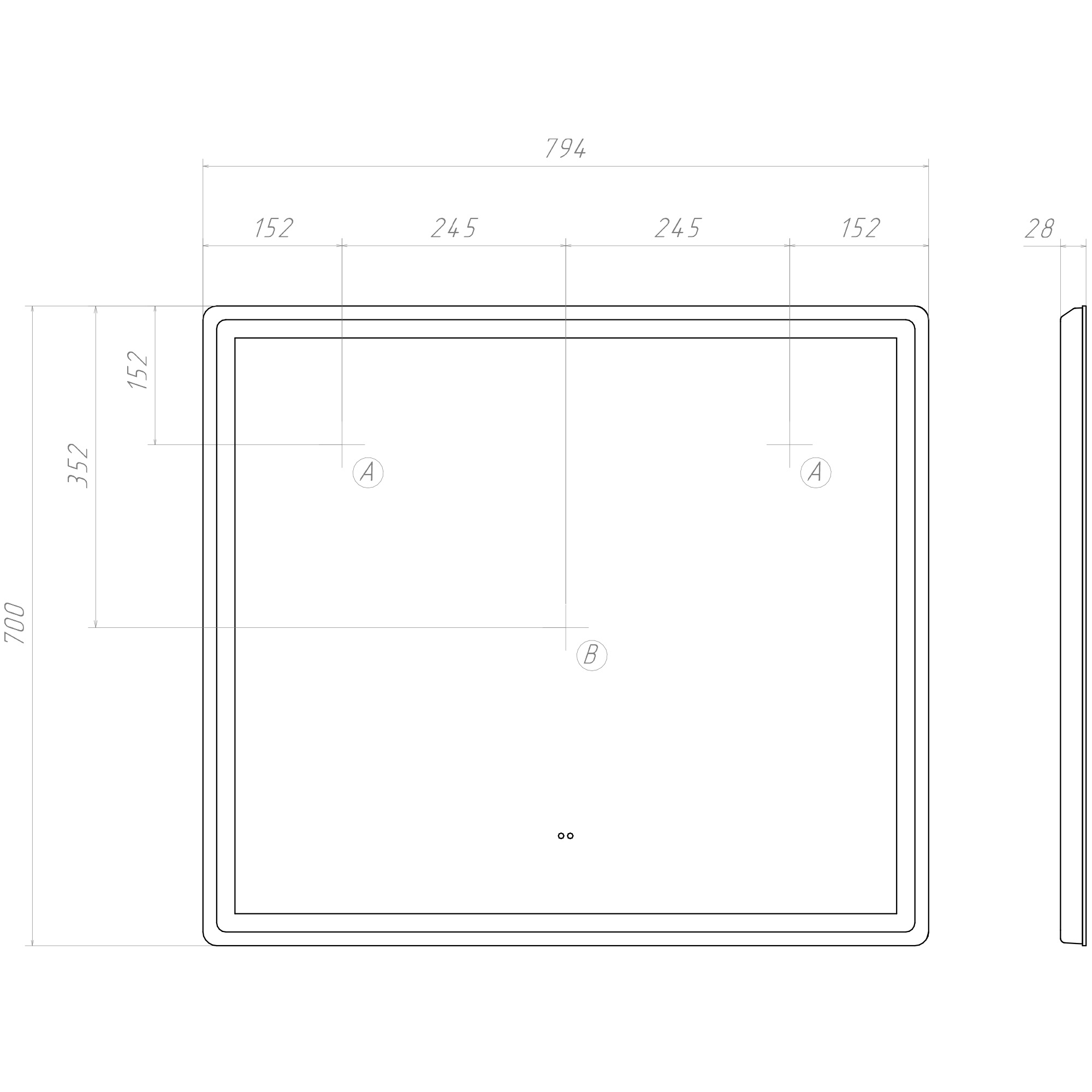 80 х 70 см (ш/в). Светодиодная подсветка, бесконтактное включение (на взмах), функция антизапотевания.