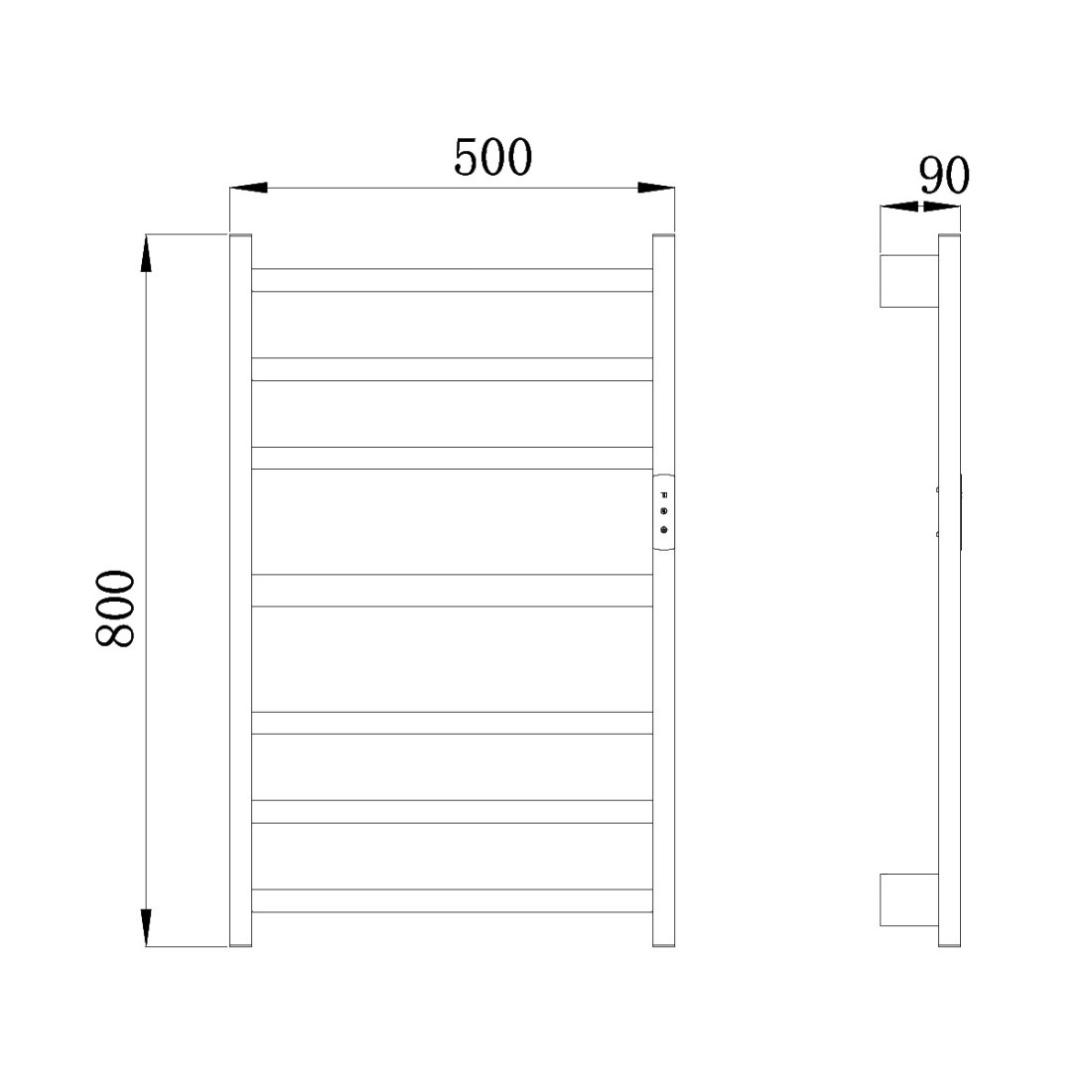 500x800 мм. Тэн справа. Скрытое/открытое подключение. Мощность: 130 Вт. Материал - нерж. сталь. Количество перемычек - 7. Цвет- графит.