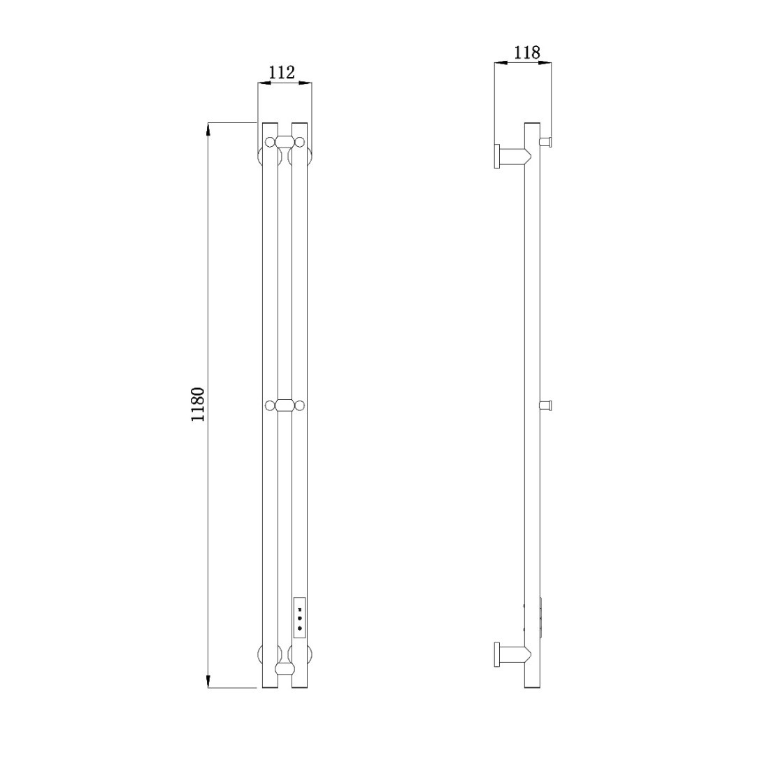 112x1180 мм. Тэн справа. Скрытое/открытое подключение. Мощность: 80 Вт. Материал - нерж. сталь. Количество перемычек - 2. Цвет- золото матовое.