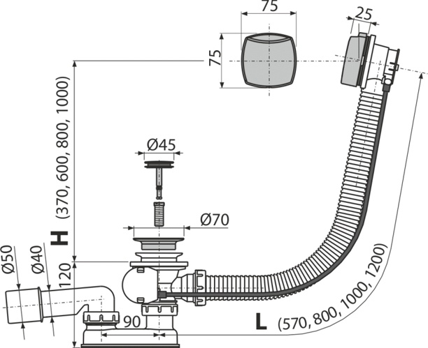 Сифон полуавтомат для ванн ALCAPLAST A553K