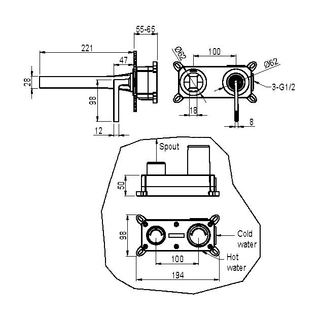 Монтаж скрытый, наружная и черновая частьть в комплекте.