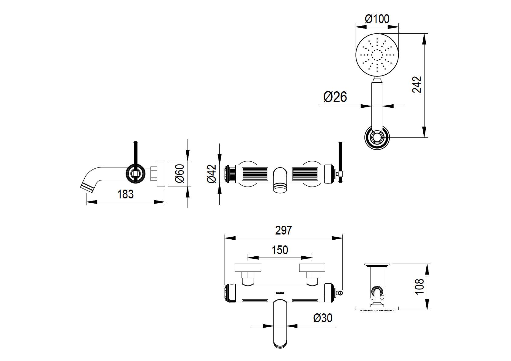 С душевым набором. Материал-латунь. Покрытие-графит матовый.