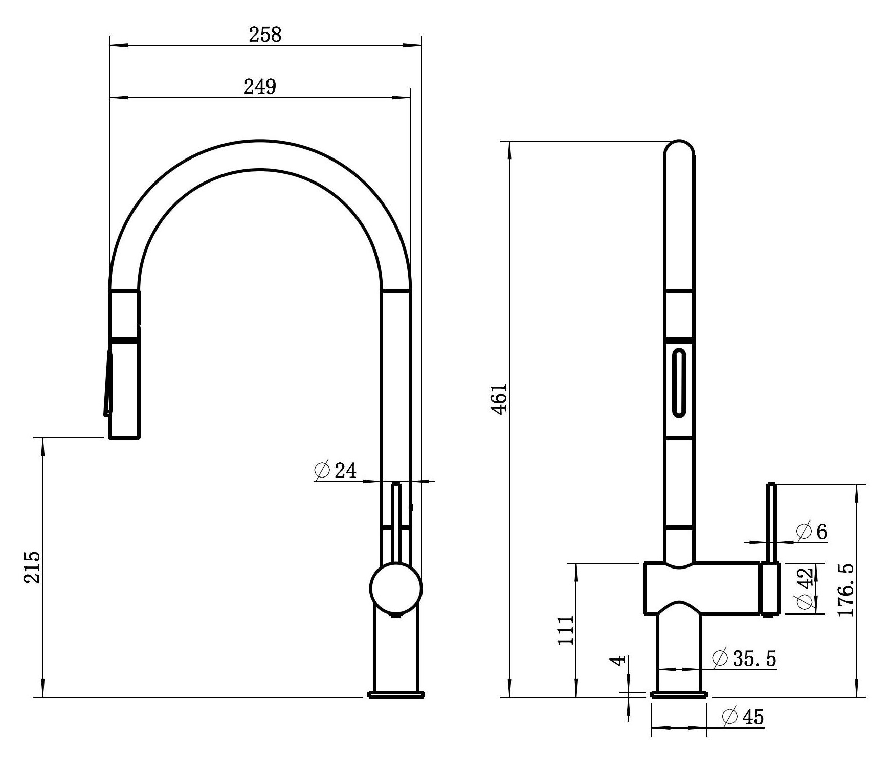 | Высота излива, мм | 215 |