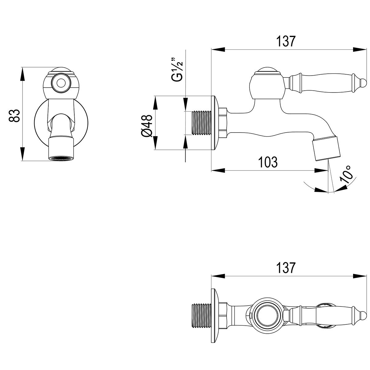 Керамический Кран-букса. Подключение 1/2". Цвет: бронза.