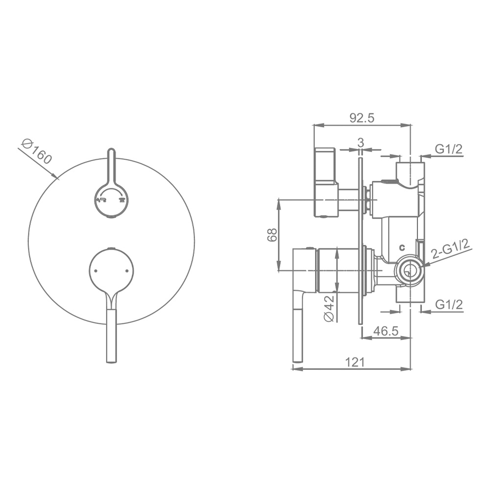 • Переключатель с керамическими пластинами угол поворота в изливе – 90°