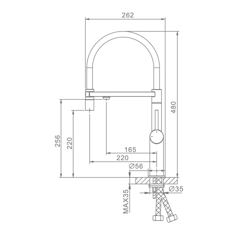 Керамический картридж, 1 режим струи, канал для фильтрованной воды, поворотно-выдвижной излив (360°), материал корпуса: нержавеющая сталь, цвет: сатин.