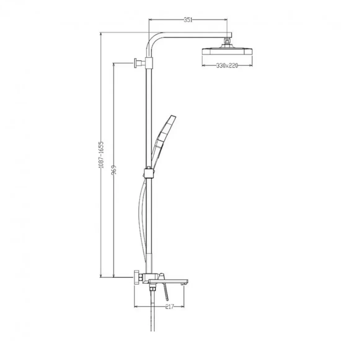 Для ванны, с картриджным смесителем в комплекте. Верхний душ 330*220 мм. Регулируемая высота и угол. Фронтальное крепление к стене. Цвет: черный матовый.