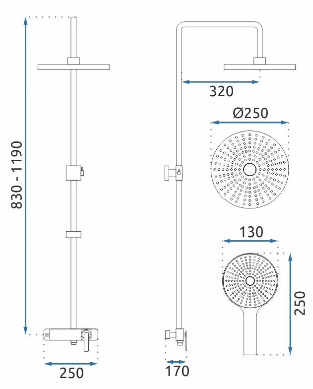Для ванны, с картриджным смесителем. Высота 1260 мм, угол наклона душа. Ручной душ. Цвет: золото глянец.