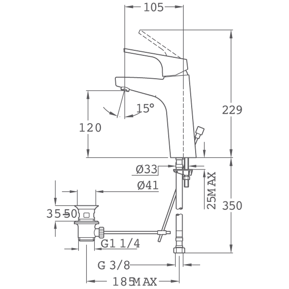 Смеситель для умывальника Teka MT Plus L 46.382.02.50